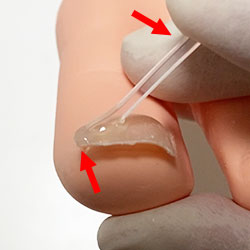 巻き爪専門に特化した補正技術になります。補正器具は、日本製の選び抜かれた特殊樹脂を使い、今までにない湾曲面をもった補正具を使用するため、巻いた爪を持ち上げることが可能となりました。もちろんゆっくり優しく持ち上げる為、優しい施術を受けて頂けます。